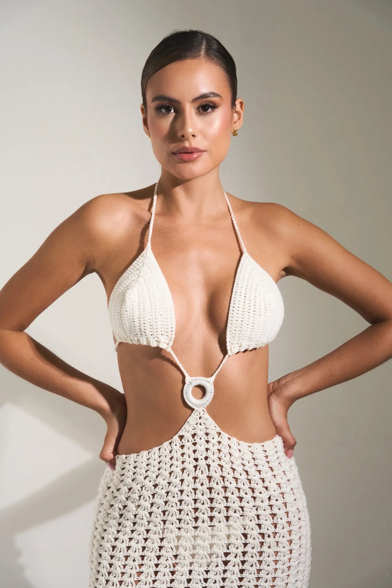 Tejido a mano con hilo de alta calidad, se ajusta al cuerpo resaltando la silueta con elegancia.