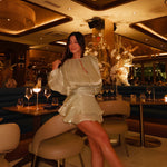 Inspirado en el encanto eterno de las ciudades de arte, Florencia es la expresión pura de la elegancia etérea. Su blusa fluida con mangas abullonadas y lazo en el escote, junto a un short delicado con volantes suaves, crean una silueta romántica y luminosa que fluye con naturalidad.