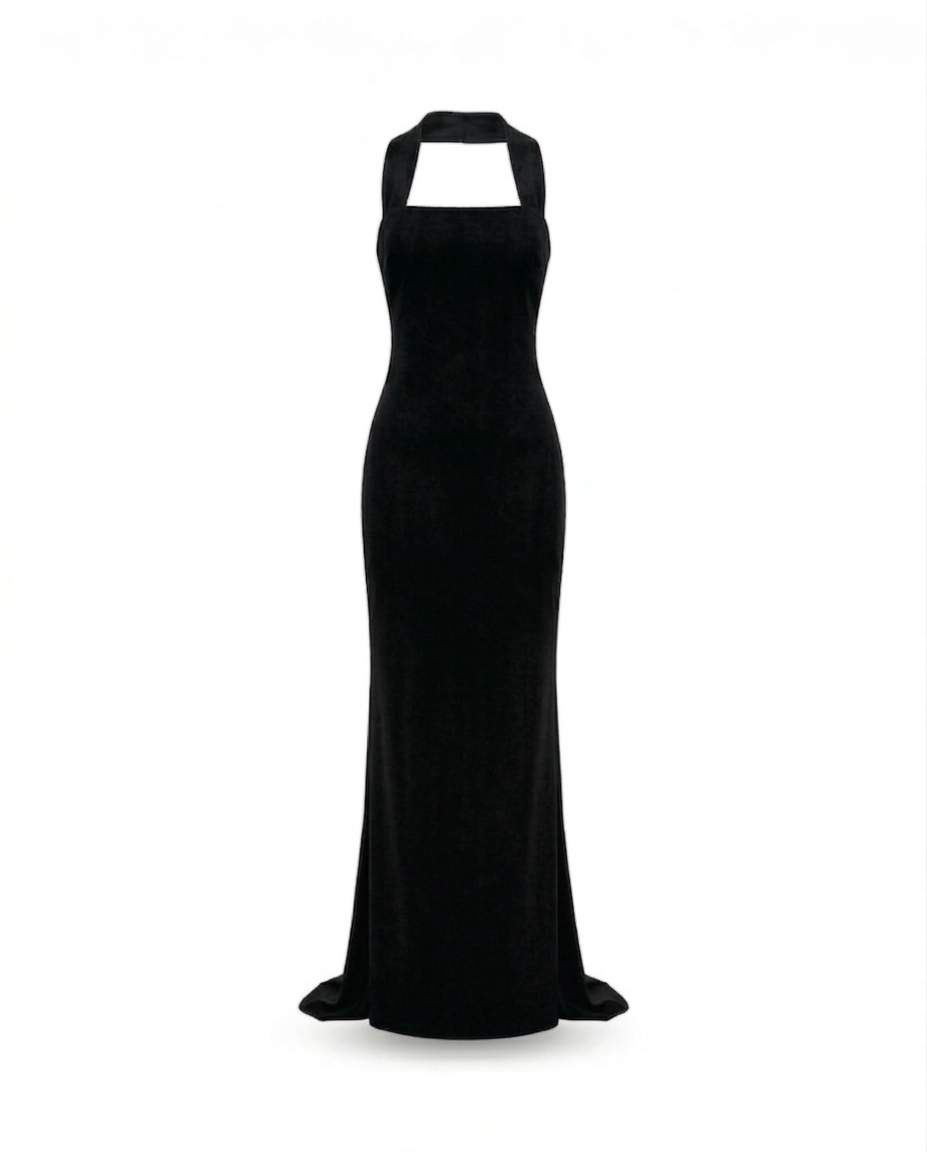 El vestido Venus es una pieza que combina sofisticación y sensualidad. Su diseño strapless con choker integrado resalta el cuello y los hombros, creando una silueta estilizada y audaz. Confeccionado en un negro profundo, su corte largo y perfecto ajuste realza la figura de manera impecable, ofreciéndote una horma que define con elegancia cada línea del cuerpo.